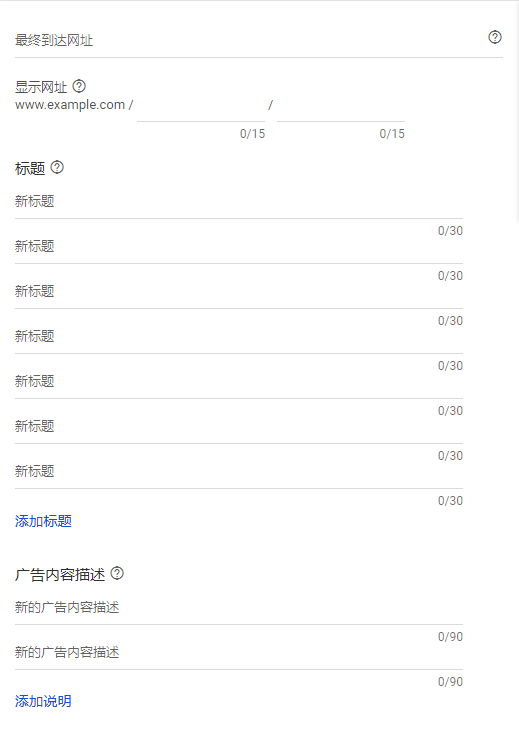 在任何廣告文案組合中,最多會(huì)顯示3個(gè)標(biāo)題和2個(gè)說(shuō)明。這里需要注意的是,系統(tǒng)會(huì)以任意排序的方式進(jìn)行組合,因此我們要確保在任意組合標(biāo)題和說(shuō)明后,文案創(chuàng)意都是清晰有意義的!