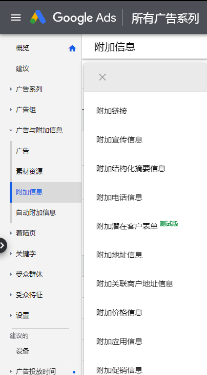所以,使用廣告附加信息不僅不用加錢(qián),同時(shí)還能帶來(lái)好處。附加信息有好幾種選擇,以下是經(jīng)常被使用的附加信息種類(lèi):