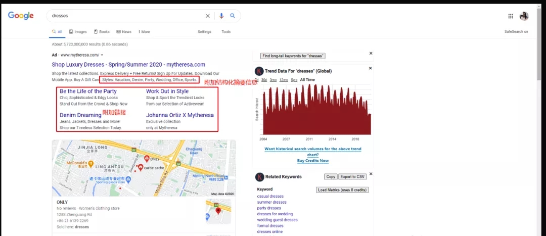 ⑤附加地址信息:實(shí)體店可以將Google我的商家鏈接到Google Ads帳戶中,讓潛在客戶可以輕松了解商家位置。