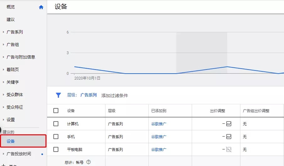 在這個(gè)頁(yè)面中可以知道手機(jī)、電腦和平板各自的效果。在一些情況下,你可以給手機(jī)或電腦更多預(yù)算,借此最大化廣告效果。